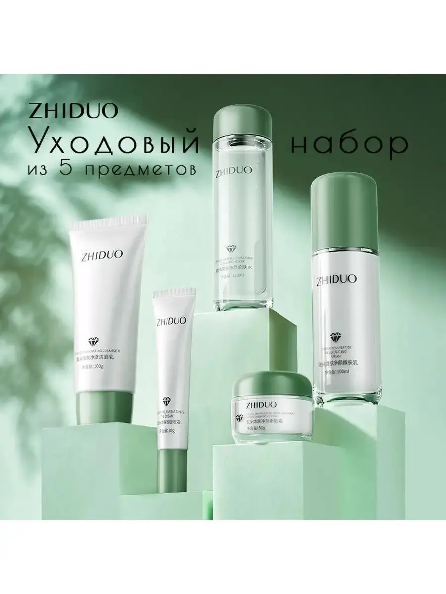 | Полный состав набора: | Пенка для умывания, тоник (лосьон), сыворотка, крем для век, крем для лица |