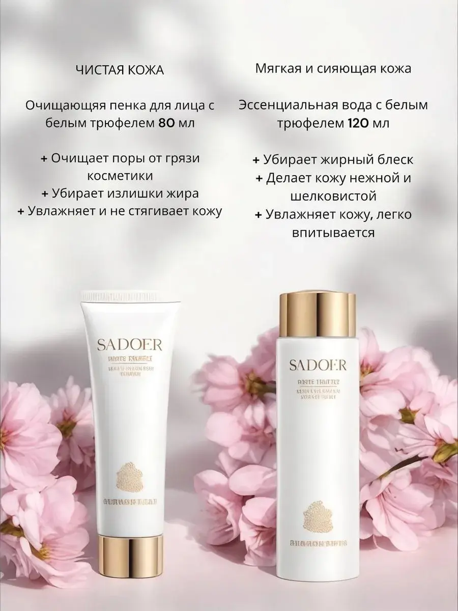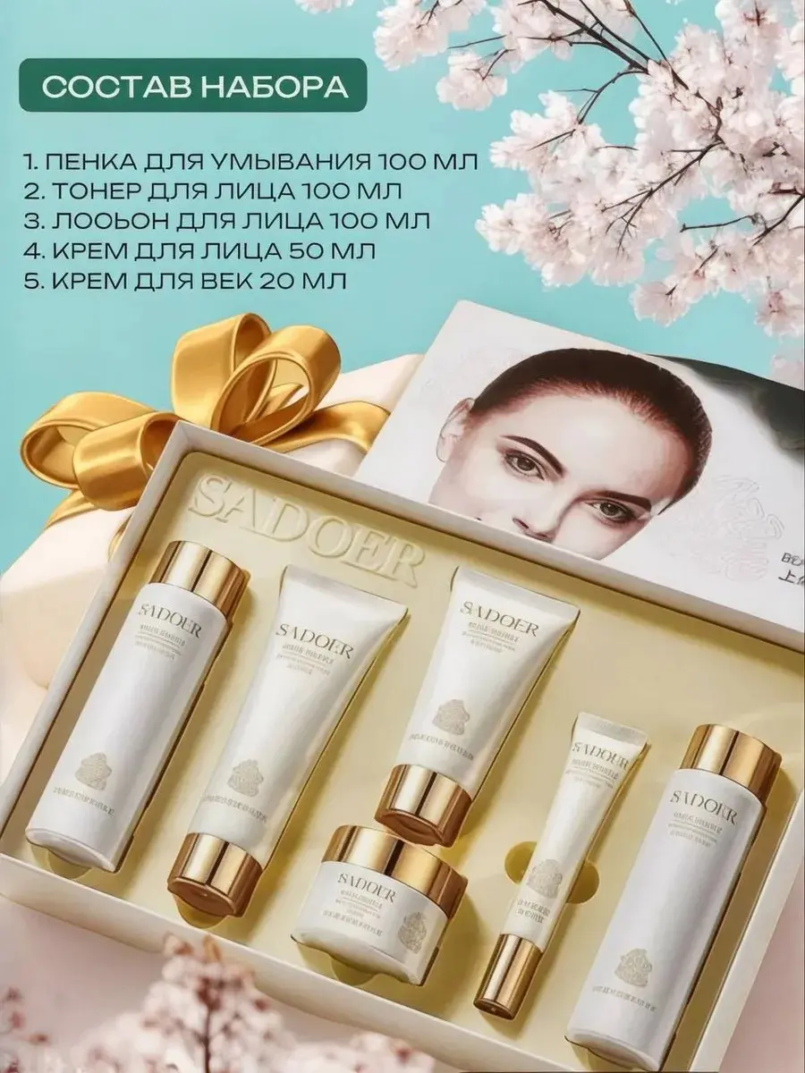 Подарочный набор уходовой косметики Sadoer (бьюти-бокс) — это идеальный выбор для тех, кто ценит профессиональный уход за кожей или ищет готовый эффектный подарок. Этот универсальный набор подойдет для женщины или девушки на любой случай, особенно как популярный подарок на 8 Марта.